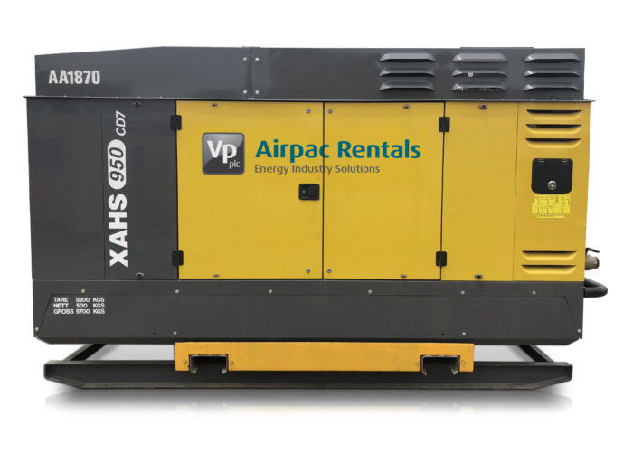 Airpac Rentals's XAHS 950 cfm Safe Area Air Compressor offers delivered flow of 26.9m³/min (950 cfm) with a pressure rating of up to 12 bar (175 psi).